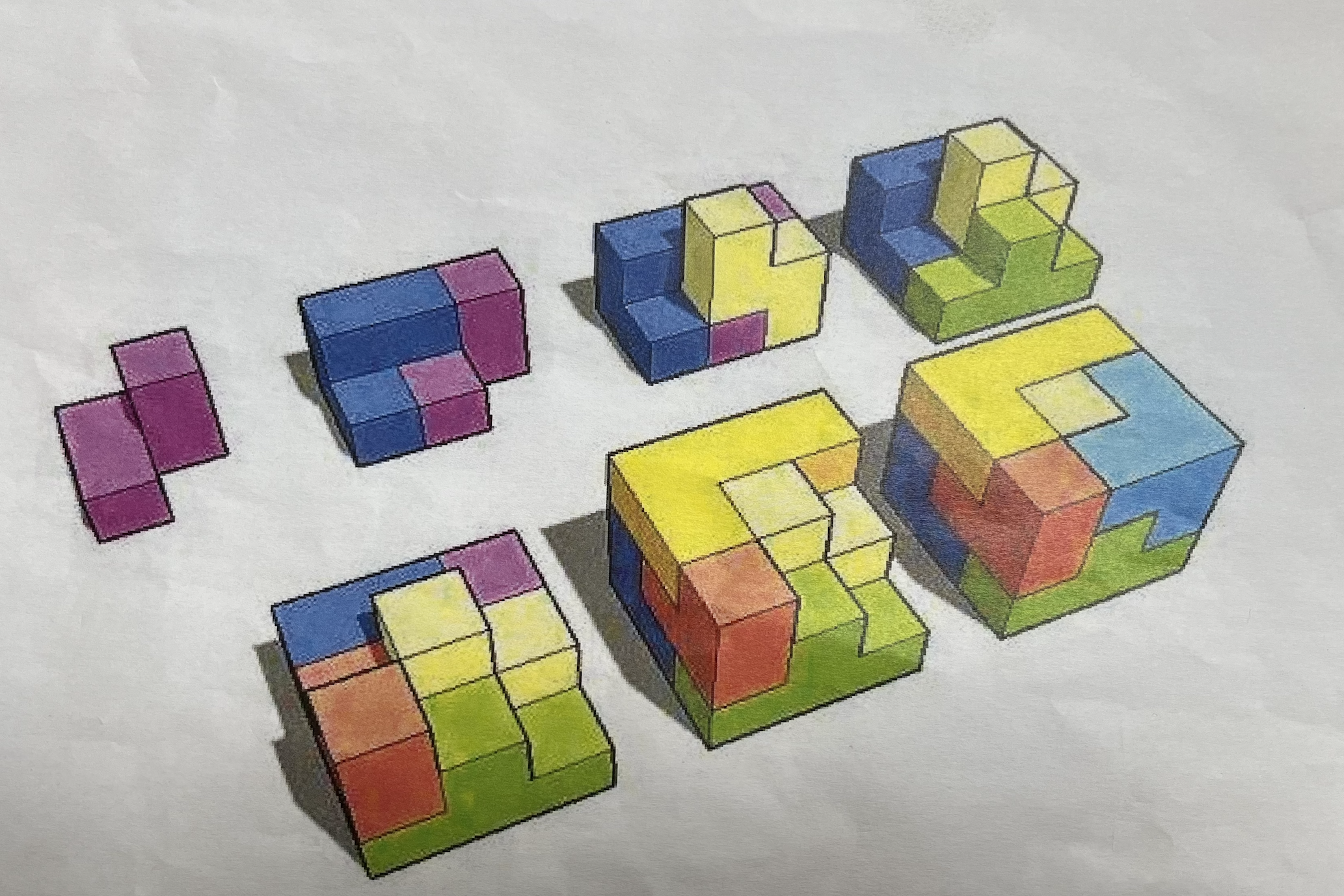 - Vorm zo snel als mogelijk een gelijkzijdige kubus, met de aanwezige blokken.