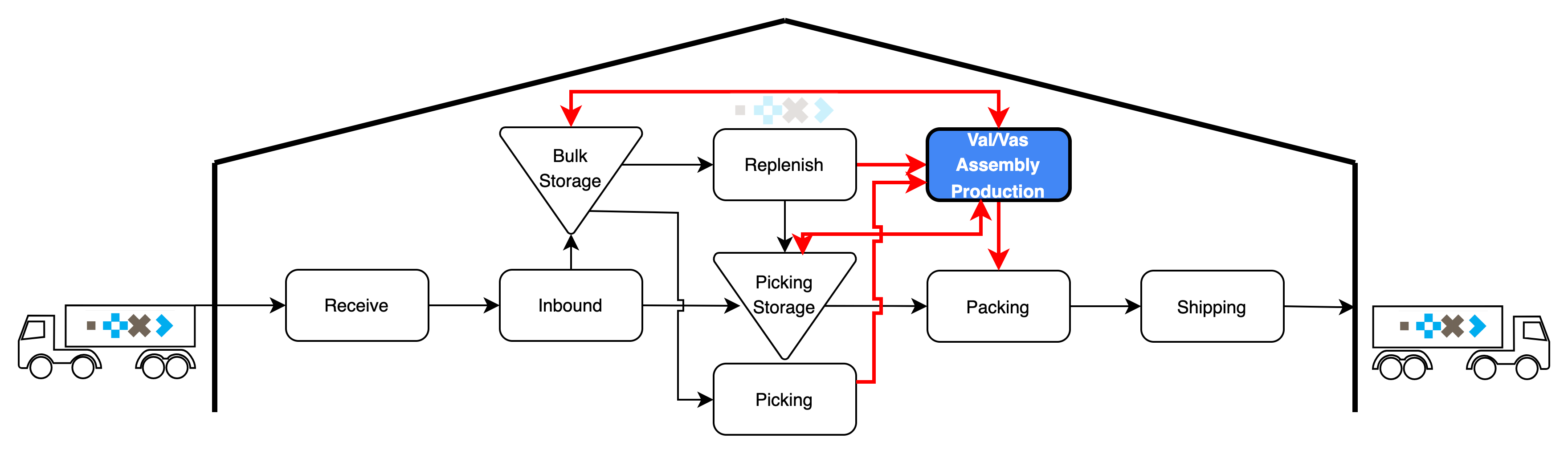 Beide zijn “waardetoevoegende activiteiten” in de bevoorradingsketen’. Deze activiteiten vinden met name plaats in de distributiecentra waar bedrijven hun winst halen uit het toevoegen van diensten. Bijvoorbeeld: het opslaan en verzenden van onderdelen of het in kleine porties verpakken van geneesmiddelen met een ‘bijsluiter’ in de juiste taal.
